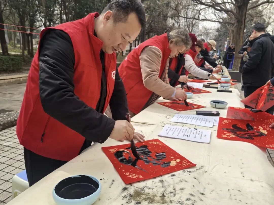 活动现场,暖意融融,书法爱好者们挥毫泼墨、笔走龙蛇,将宪法精神、《民法典》要义与新春祈愿巧妙融入笔墨之间。不一会儿,一副副对仗工整、意境高雅的法治主题春联便新鲜出炉,红纸上的鎏金大字既饱含着对新年的美好期许,更蕴含着尊法学法守法用法的法治理念。