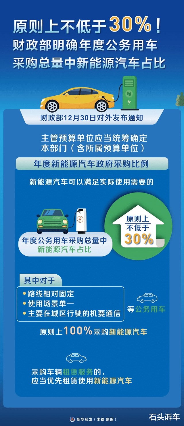 国家明确年度公务用车采购总量中,新能源车占比原则上不低于30%。
