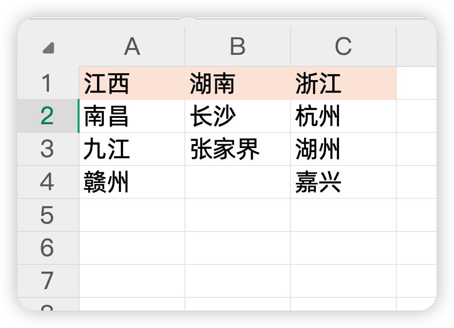 1、准备源数据:数据源的第一行放入我们的一级数据