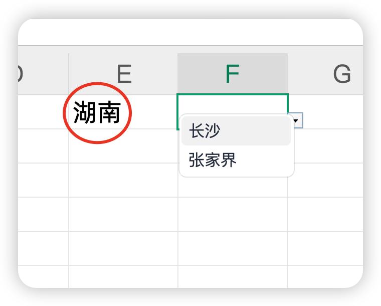 它的原理很简单,就是当我们E1单元格输入了一个字段的时候,例如,我们输入了湖南