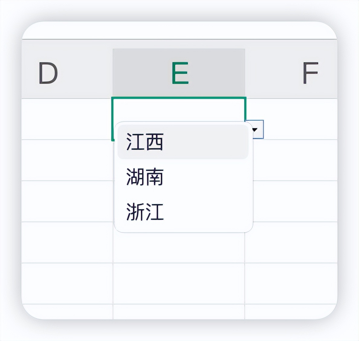 我们选中需要放置一级下拉菜单数据的位置,这里是E列