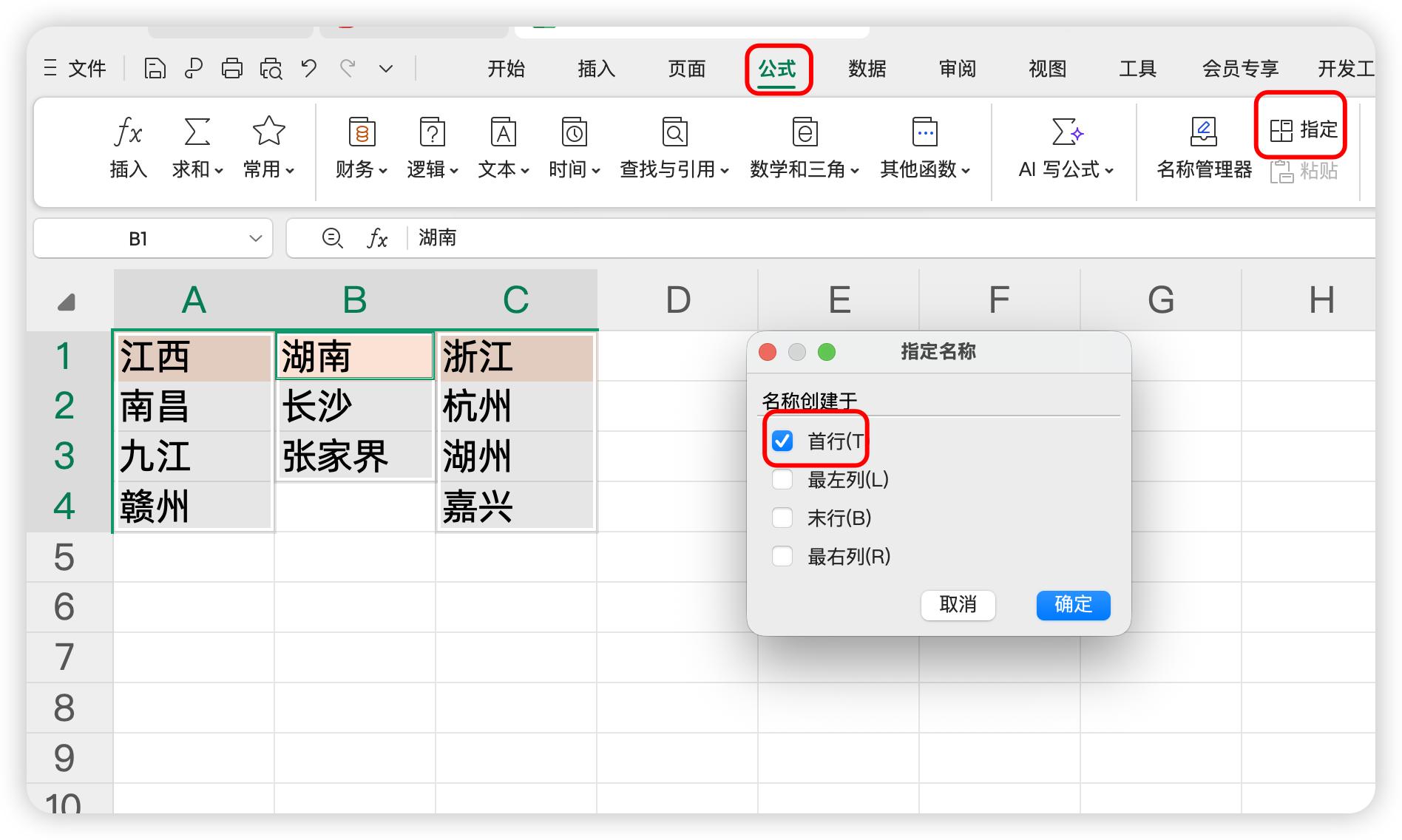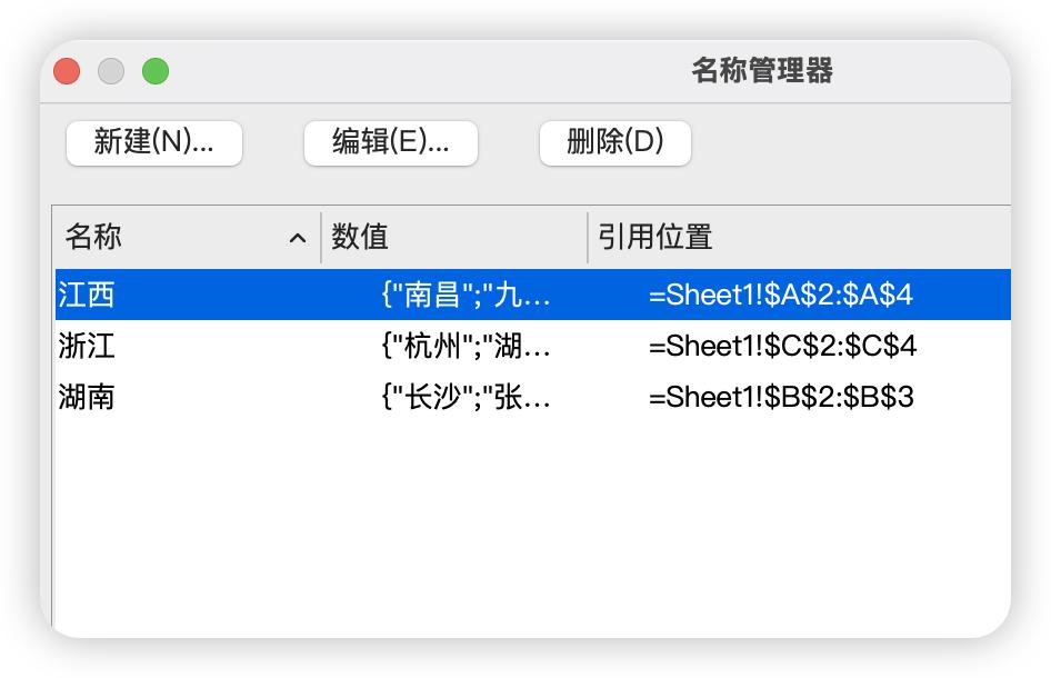 因为我们用名称管理器制作了湖南数据集,就是对应的的B2:B3的数据源了
