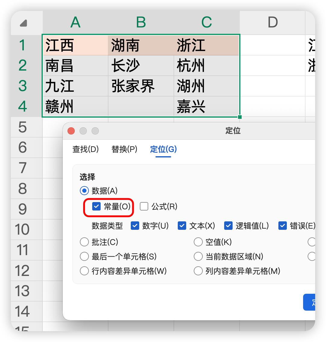2、生成名称管理器选中所有的数据区域,然后按CTRL+ G,找到定位条件
