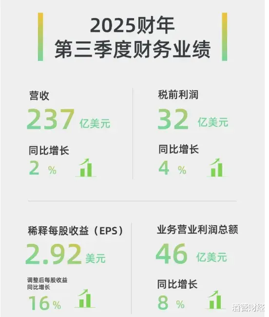 华特迪士尼公司公布截至6月28日的2025财年第三季度财报显示,营收237亿美元,同比增长2%。