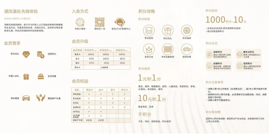 与此同时,榆林国贸中心构建分层分级的权益体系,设计多重尊享礼遇,如专属贵宾休息室、惊喜生日礼、倍享积分等,开启灵感涌现的时尚探索旅程。面向高端会员,榆林国贸中心进行场内特权叠加,如高级别的金卡/黑金卡会员可尽享停车、积分抵现、生日礼、品牌折扣、下午茶等,实现权益价值跃升。