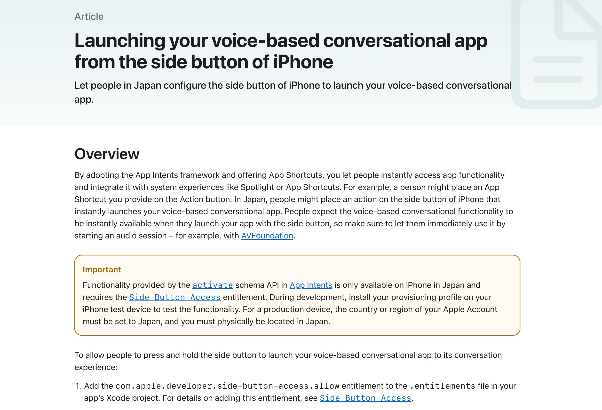 第三方语音助手(日本) 根据苹果最新的开发者文档,苹果即将允许 iPhone 侧边按钮(电源键)激活使用 Siri 以外第三方语音助手。不过需注意的是,这个能力仅限于日本地区的 iPhone。