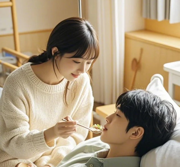 我看向一旁的妻子一口一口地喂着弟弟喝粥,脸上是我从未见过的耐心和温柔。