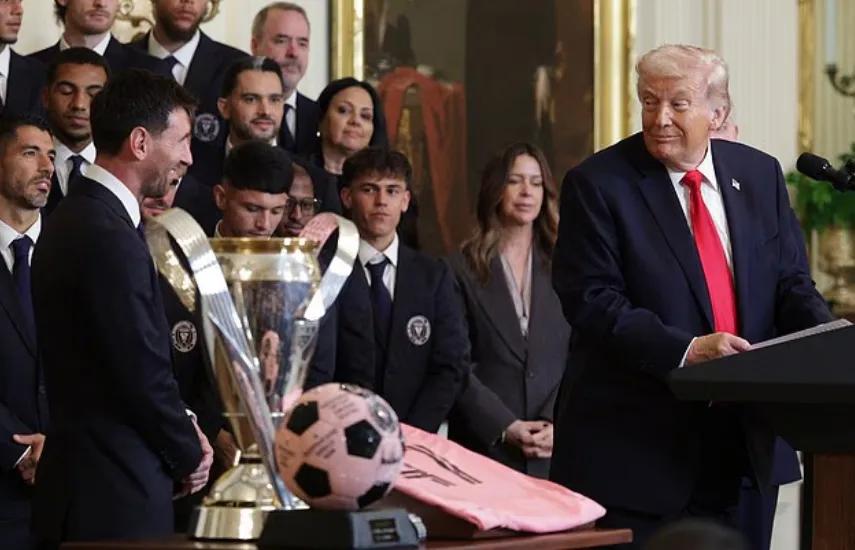 北京时间3月6日,据英国《每日邮报》报道,美国东部时间3月5日下午,美国总统特朗普在白宫接见美职联新科冠军迈阿密国际队时,上演了一出让全球网友直呼“尴尬癌晚期”的魔幻大戏。嘴大的特朗普,不仅当众神侃轰炸德黑兰的丰功伟绩,还当着梅西的面故意提到C罗。