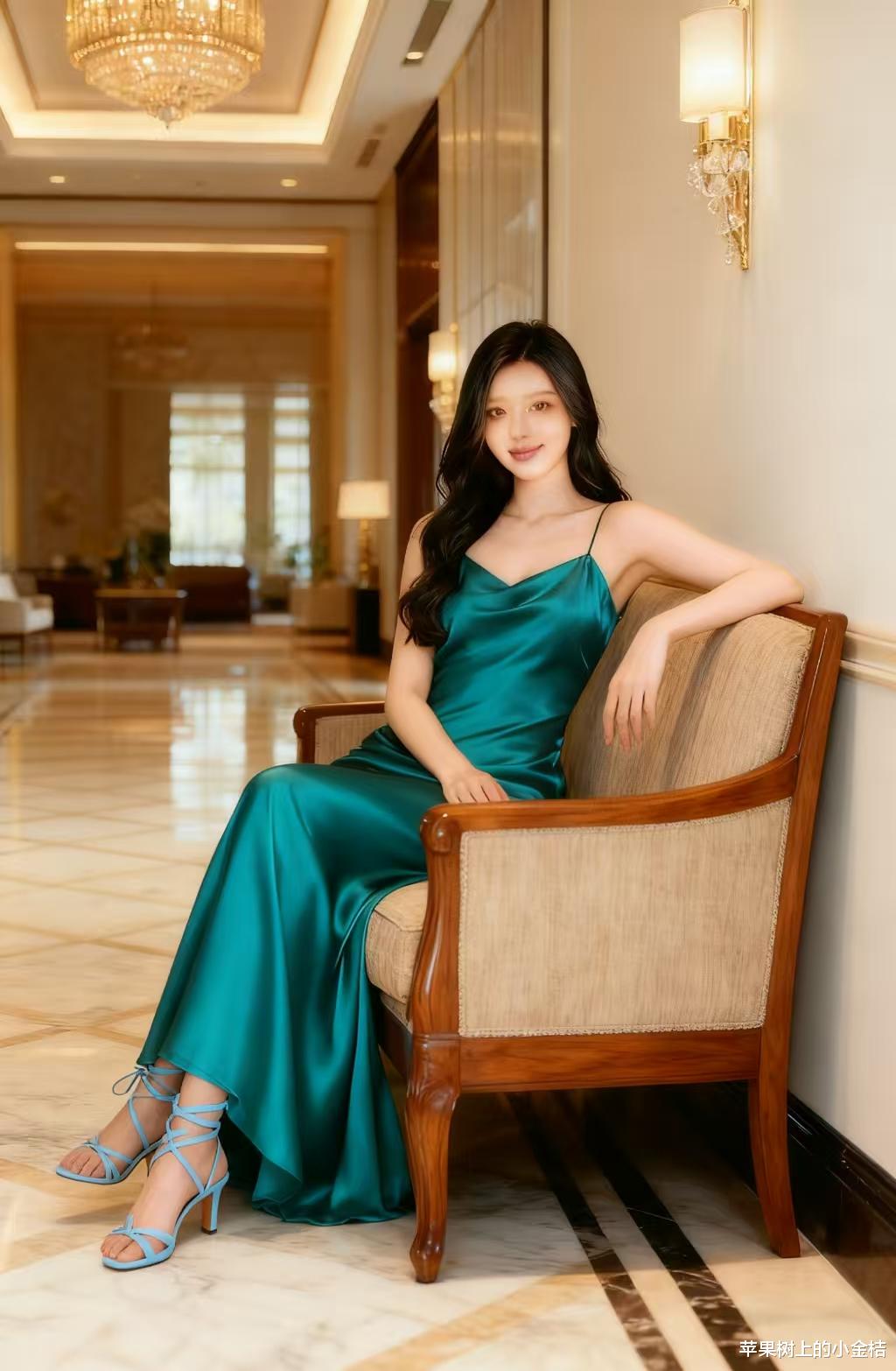 每日时尚穿搭分享:简约吊带连衣裙。