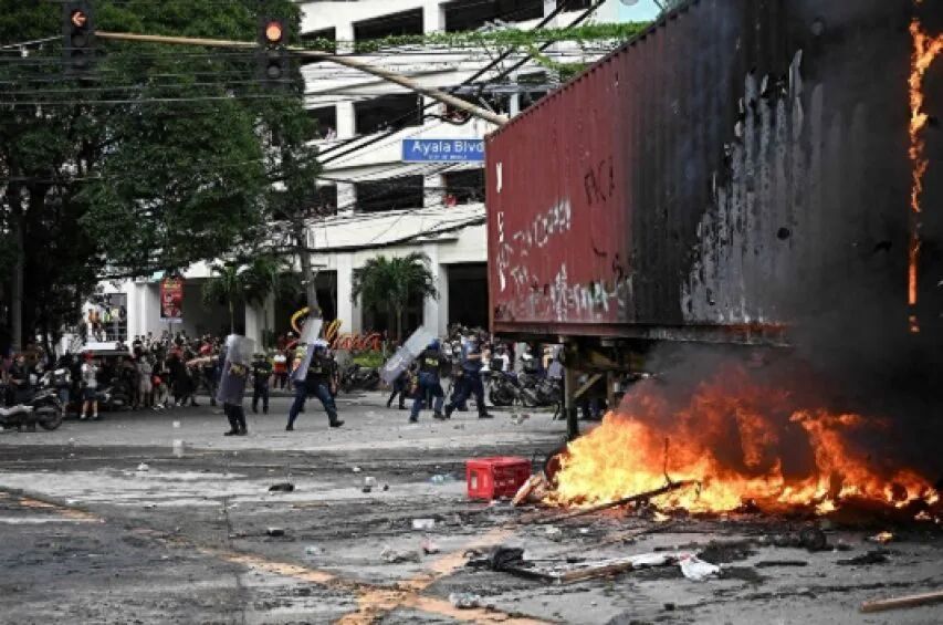 即使如此,民众的愤怒并未得到有效遏制,反而因为政府的“拖延”而愈加升级。9月21日,马科斯当局在马尼拉等地动用了大量警力来控制局面,局势一度陷入暴力冲突。警方称,约有100名“暴徒”在总统府附近的抗议活动中与警察发生冲突,投掷石块、瓶子和燃烧弹,导致约70名执法人员受伤。