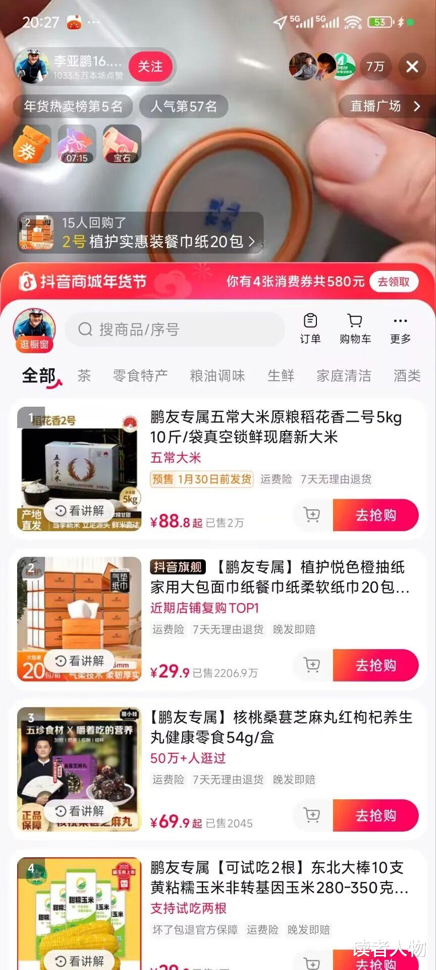 第二场直播,他听劝上了纸巾、零食、大米等日用品,销量一下就带飞了。