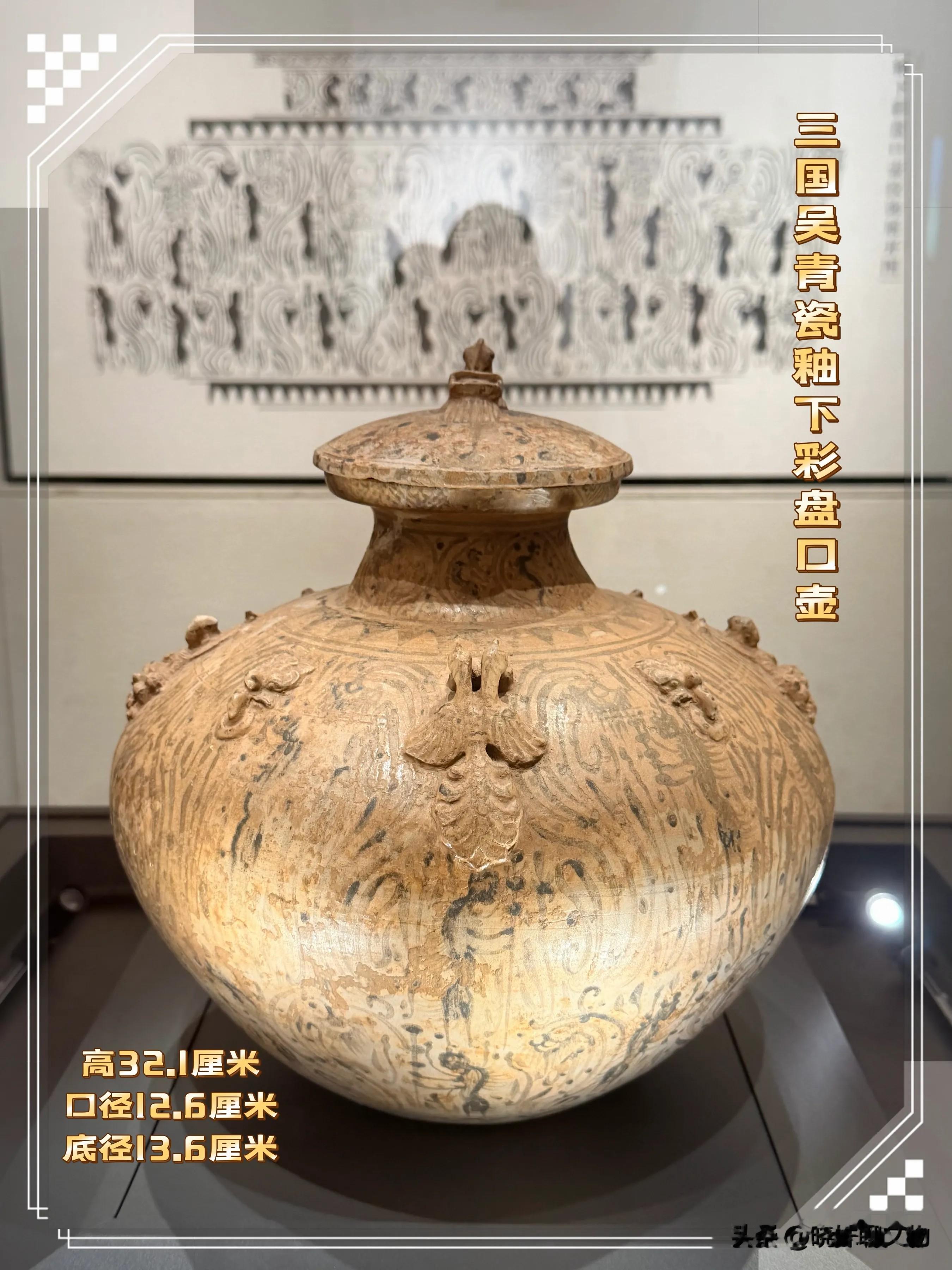 青瓷釉下彩盘口壶,是中国以绘画美化瓷器的最早典范,亦是研究三世纪陶瓷绘画的唯一实物珍品。