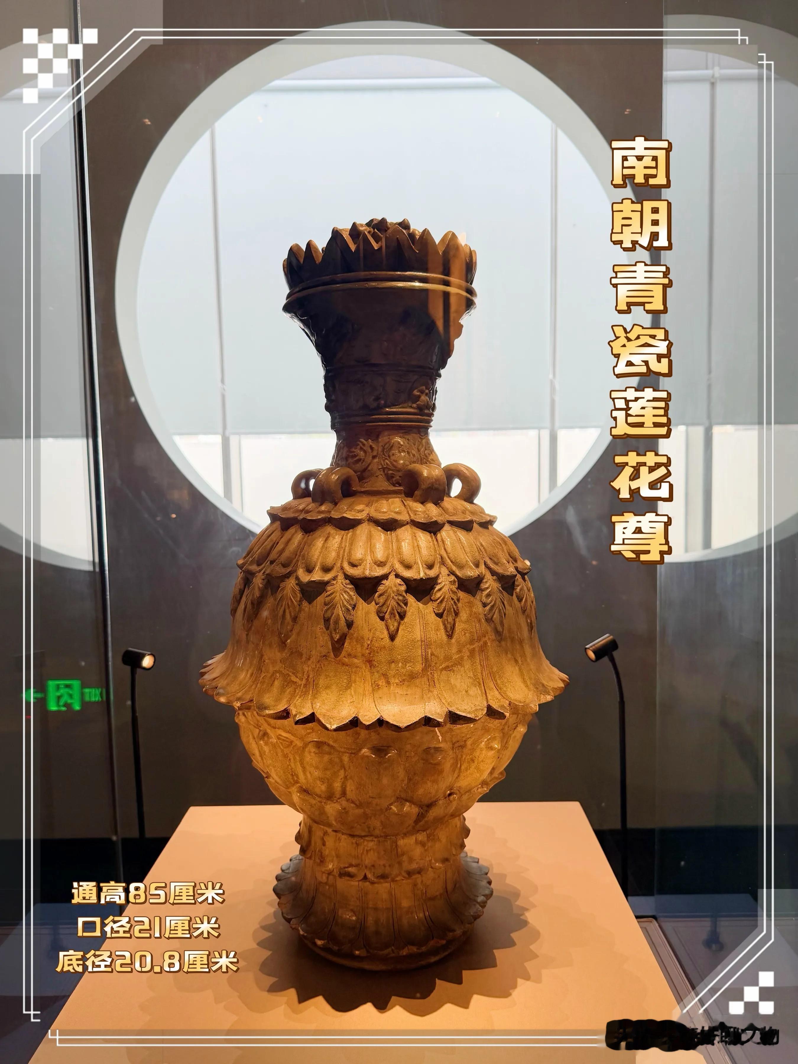 这件南朝青瓷莲花尊,堪称佛教艺术的稀世瑰宝,不仅是南北朝同类器物中体量最大、工艺最精的巅峰之作,更被誉为“青瓷之王”。
