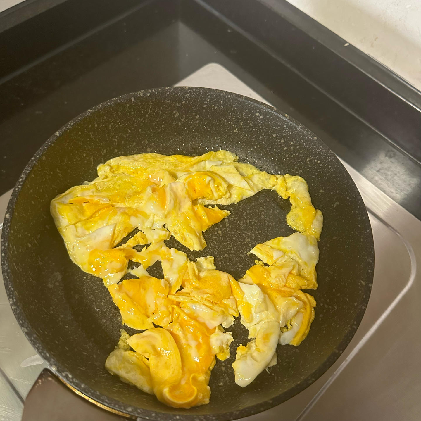 接下来,我们进入炒制环节。先将鸡蛋炒熟,待鸡蛋凝固并膨松之后,将其盛出备用。接下来,取出切好的烤肠片,两面煎至焦黄,呈现出诱人的香脆口感,然后同样盛出备用。在醒目的烤肠香味消散之前,我们再来处理土豆丁。将锅中的油调至小火,缓慢翻炒土豆丁,确保其双面焦黄且完全熟透。炒土豆是需要耐心的环节,慢火细烹才能使其受热均匀,口感更佳。