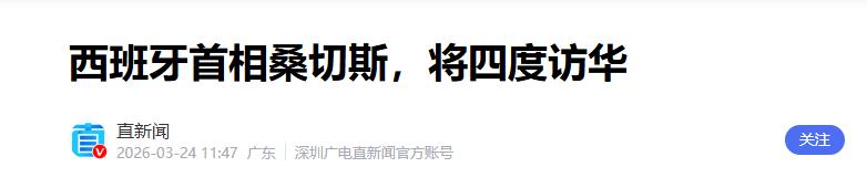 西班牙首相桑切斯,将四度访华——直新闻