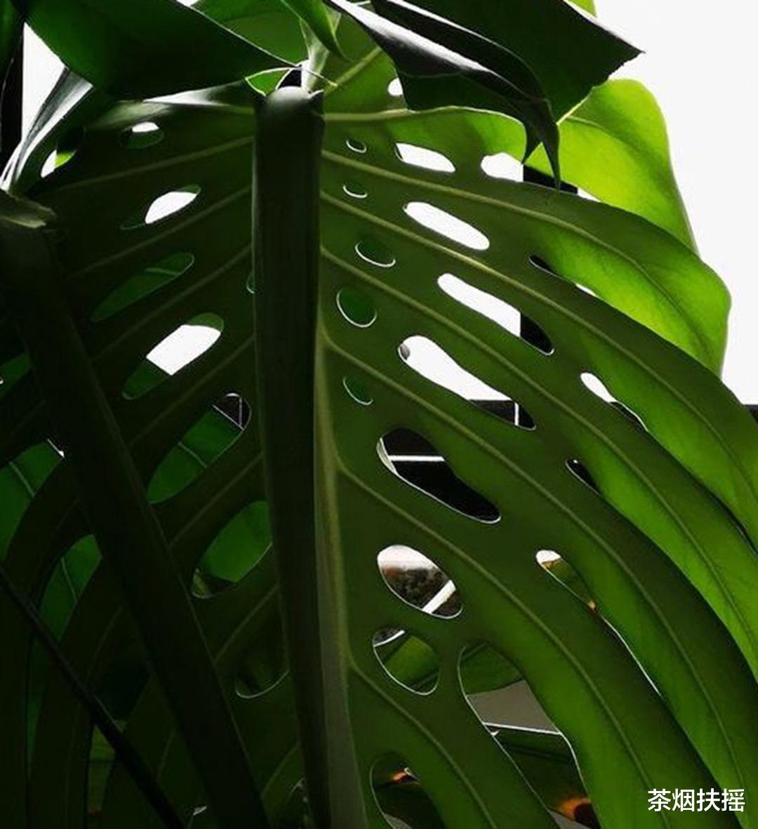 再看看在咖啡厅这种环境的龟背竹。有的咖啡厅为了营造高雅的氛围,会摆放龟背竹。可是咖啡厅的顾客流量比较大,有人开空调,有人不关窗户,湿度变化不定时。有个网友就分享过自己在一家咖啡厅工作的经历,咖啡厅里的龟背竹长势一直不好。后来尝试根据不同季节调整,夏天客流量大空调开得多,湿度低,就多喷水;冬天人少暖气足,湿度大就通风,经过一段时间调整,龟背竹长好了。