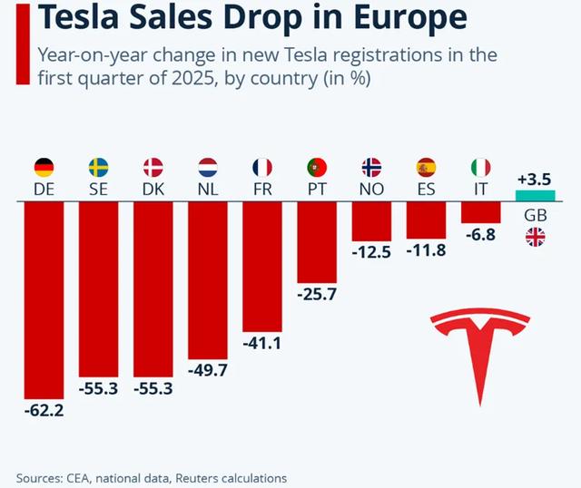 事实上,自特朗普上任以来,针对特斯拉的暴力和破坏行为频发,充电站被烧、展厅被枪击、车主被羞辱,还爆发了席卷全球的“打倒特斯拉”抗议行动,矛头直指马斯克。受此影响,特斯拉在欧洲多国销售两位数剧减。