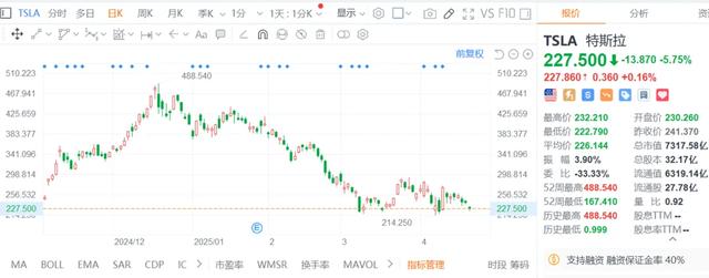 4月21日,一季报公布前夕,斯拉股价重挫近6%,报收227.50美元。这是该股今年第12次出现单日跌幅超5%的情况。今年以来特斯拉股价已累计下跌近44%,近乎腰斩。
