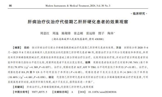参考资料[1]周意红.肝病治疗仪治疗代偿期乙肝肝硬化患者的效果观察 ,现代仪器与医疗,2024-06-25