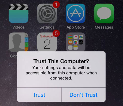 您需要确保在将 iPhone 插入计算机时,在手机主屏幕上选择了“信任”选项。否则,iTunes 将无法检测到您的 iPhone。如果您错过了这一步,可以尝试以下步骤: