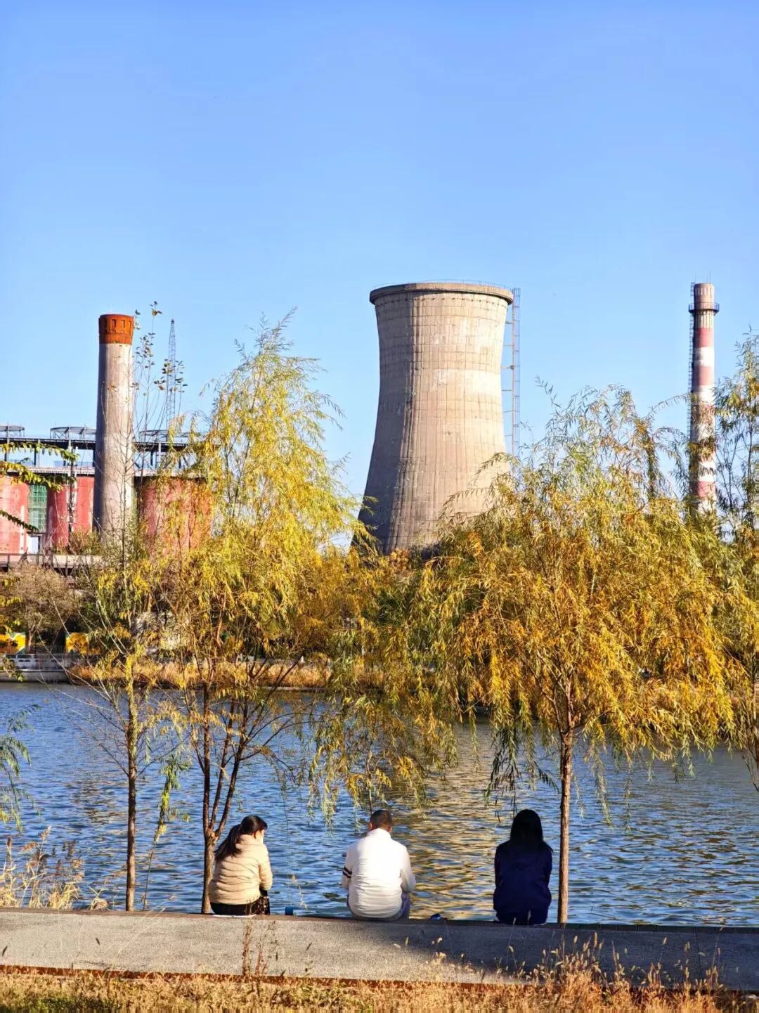 远处的冷却塔静静矗立,
