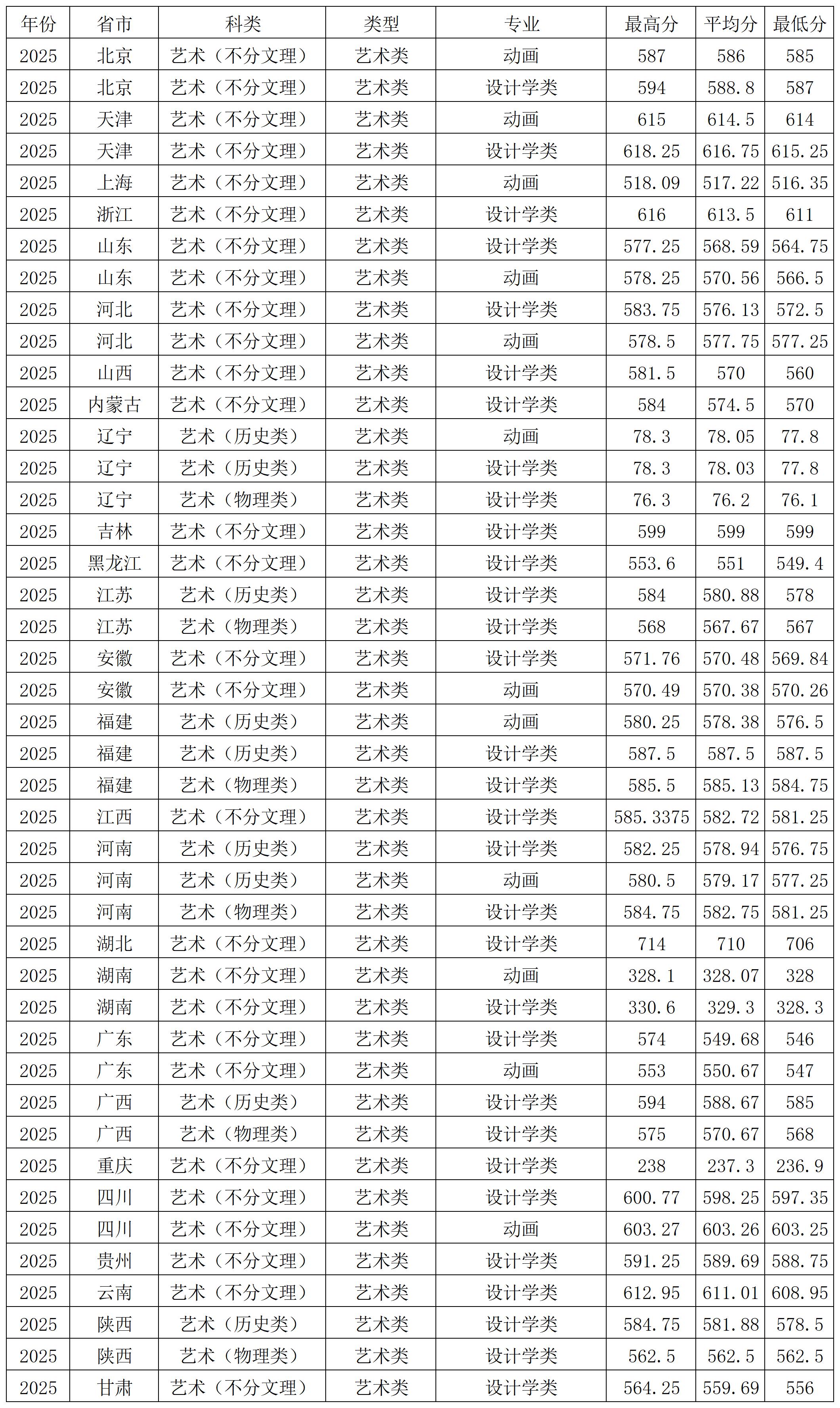北京林业大学2025年艺术类在各省各专业 录取分数线