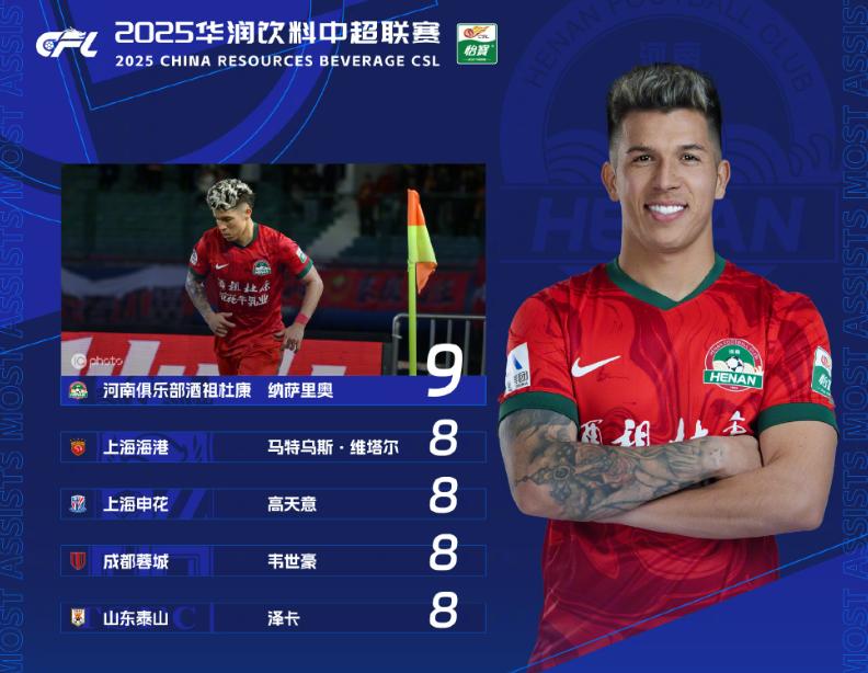 助攻榜方面,本赛季谢文能和李源一都有出色表现,克雷桑、泽卡后来居上。在对阵海港的比赛中,泽卡两次助攻,个人助攻次数达到8次,仅落后纳萨里奥1次,排名第二位,有望冲击助攻王的位置。克雷桑、李源一和谢文能都是7次助攻,三人也有提升空间。本赛季,泽卡已经打进10球,如果助攻数突破10次的话,他将完成单赛季10+10的新突破。之前,泰山队莫伊塞斯曾在2023赛季有过单赛季10+10的数据。