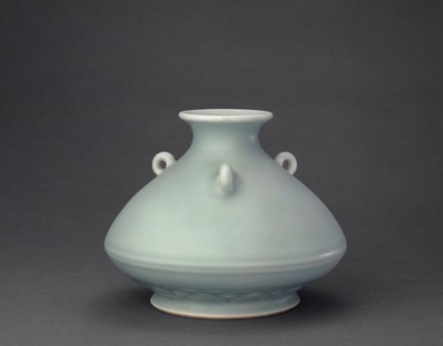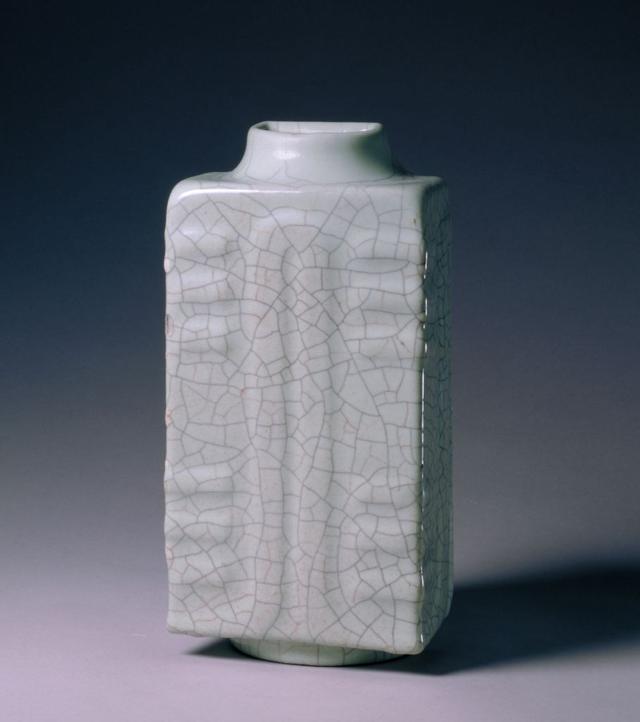 除此之外,仿历代名窑烧造的单色釉,也是雍正官窑的一个重大成就。仿官器的釉色多为豆青、月白、灰蓝等,釉层上有较大的开片。器型主要有贯耳瓶、葫芦瓶、象耳尊、扁壶等。