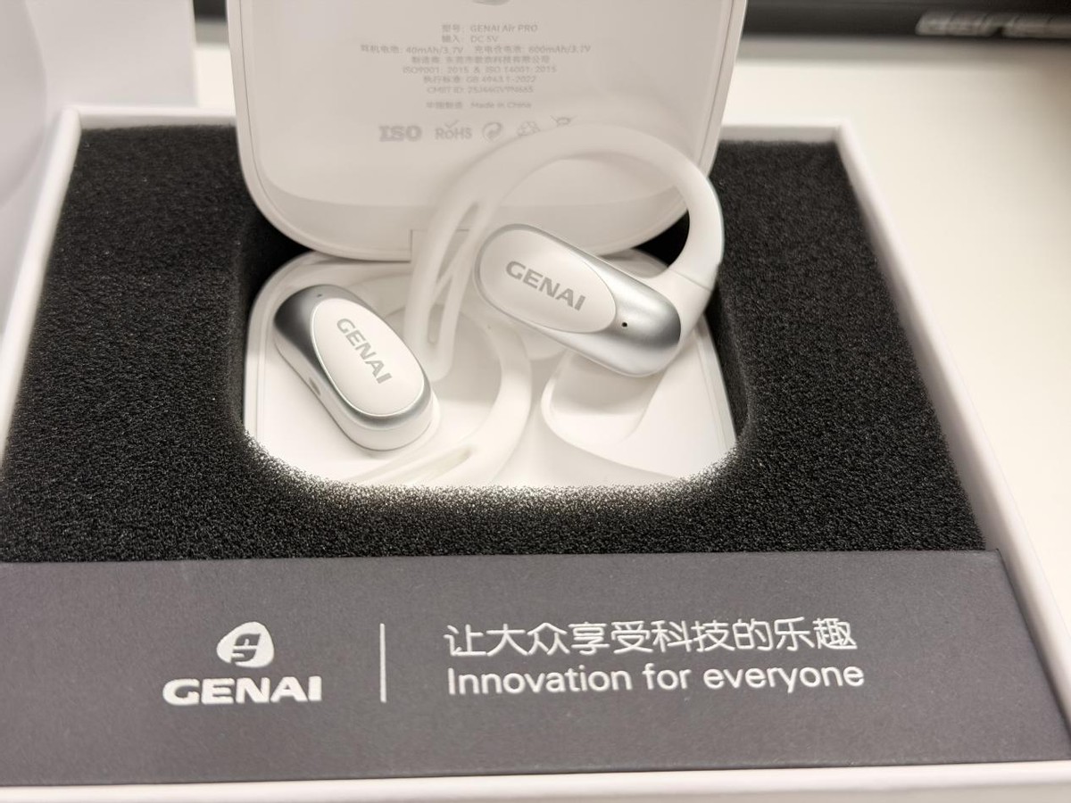 在佩戴舒适度上,这个是下了一点功夫的。它用的是根据人工学设计的机身,把压力给均衡地分散了,是整个耳廓,而不是只有在耳后的位置。液态硅胶+镍钛记忆合金的材质,不仅能很好地适应不同的耳型,耐用性也高,日常随便弯都不用怎么担心。