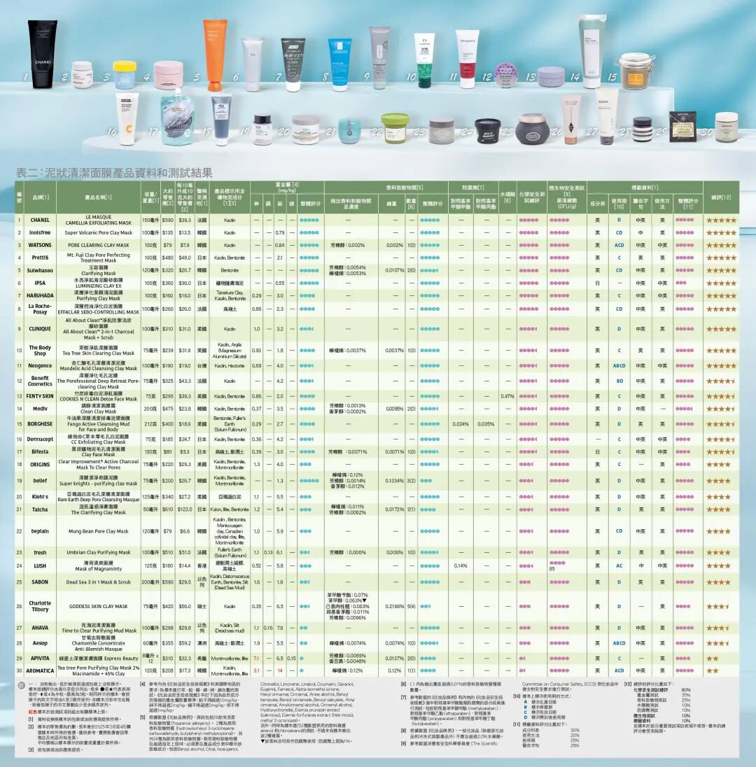 附:本次30款泥膜检测结果(图源香港消委会)