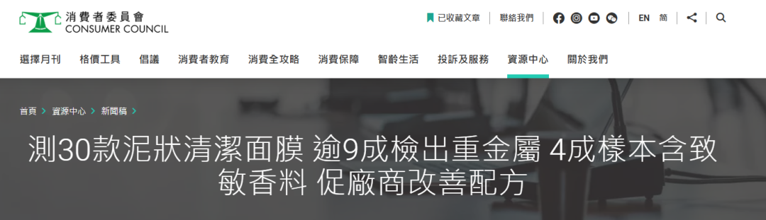近日,香港消费者委员会公布了对30款泥状清洁面膜的测试结果。超过九成样本被检出含有重金属,其中两款产品的重金属含量甚至超过了中国内地和美国的标准上限。