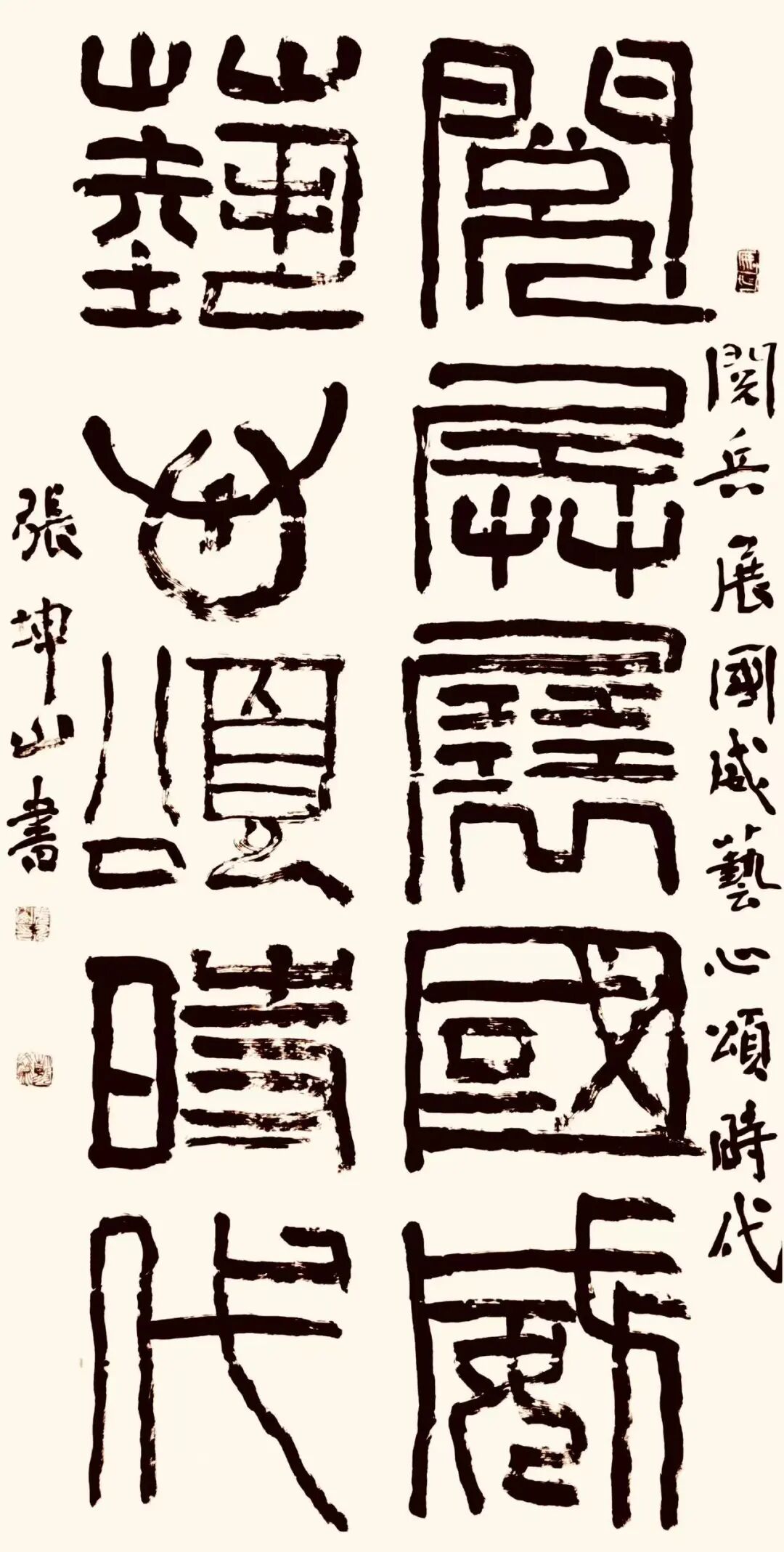张坤山 1952 年生,山东淄博人,海军政治部国家一级美术师。1990 至 2021 年连任第三、四、五、六、七届中国书法家协会理事,长达 30 余年。系中国书协第六届、七届专业委员会副主任,中国文化艺术发展促进会书法篆刻院研究员,荣宝斋书法院研究员,海军美术书法研究院副院长,北京国都墨韵书画院院长,中央文史馆书法大家班成员,国家艺术基金评审专家,享受国务院特殊贡献津贴。
