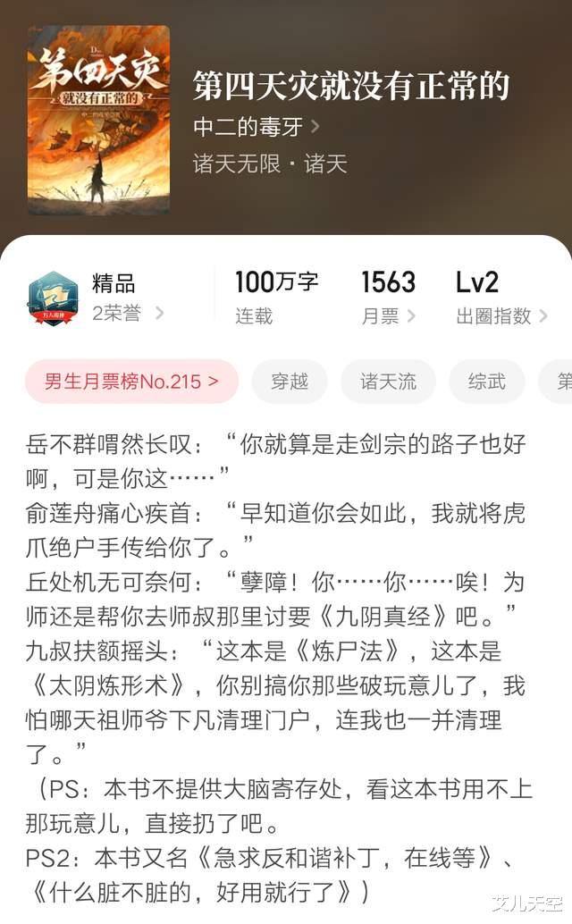 昨天万订的《第四天灾就没有正常的》试着看了一下,目前最大的印象就是游戏化的综武乐子文。