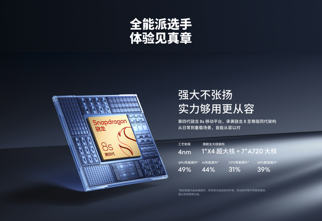 性能方面,魅族 22 搭载第四代骁龙 8s 移动平台,采用 4nm 工艺,CPU 性能提升 31%,GPU 性能提升 49% , AI 能力提升 44%,无论日常应用还是重度游戏均可从容应对。机身内部配备 4500mm² VC液冷系统,高效覆盖核心发热区域,长时间使用依旧稳定。