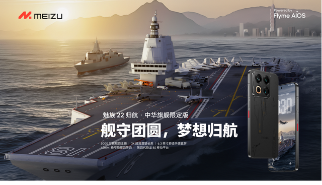 为致敬海疆卫士,也致敬每一位守护归航的奋斗者,魅族与中船推出「魅族 22 归航·中华旗舰限定版」,包含专属 UI 、金属油墨工艺手机壳、舰载机主题配件与纪念牌,该礼盒为16 GB + 512 GB 配置版本,售价 4199 元,9 月底开启预约,10 月 15 日前陆续发货。