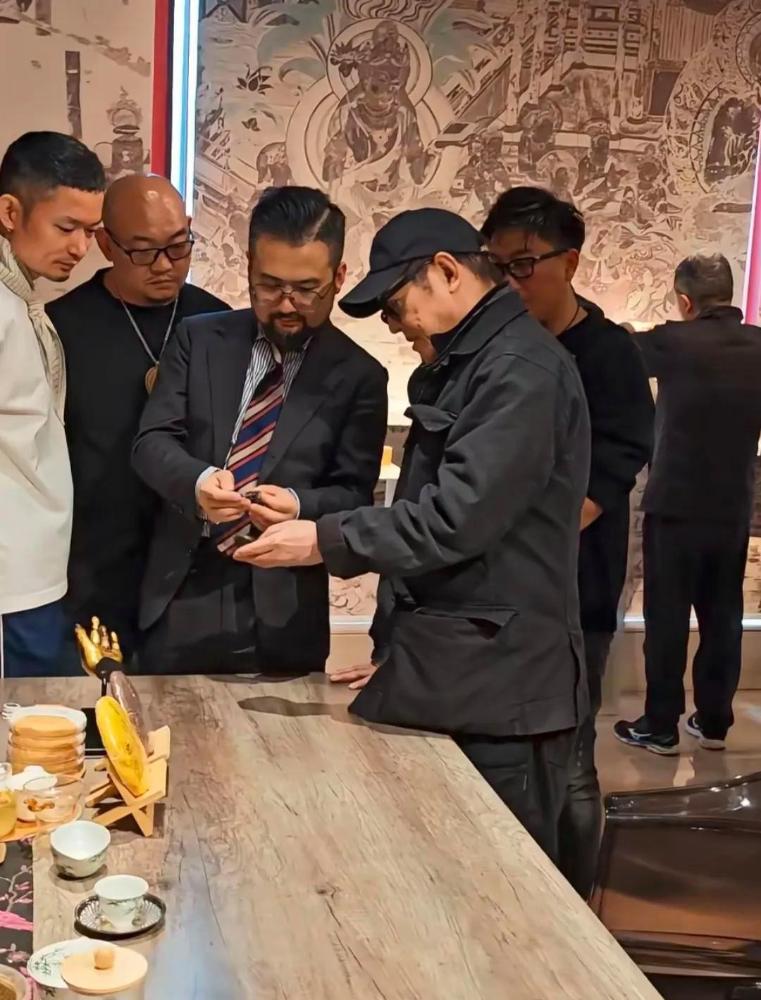 他那天在古玩城里逛得很开心,跟店主、藏友聊得热火朝天。 特别专注于看那些佛教的藏品,还跟人合影留念。 感觉他整个人都沉浸在其中,好平静祥和的样子。