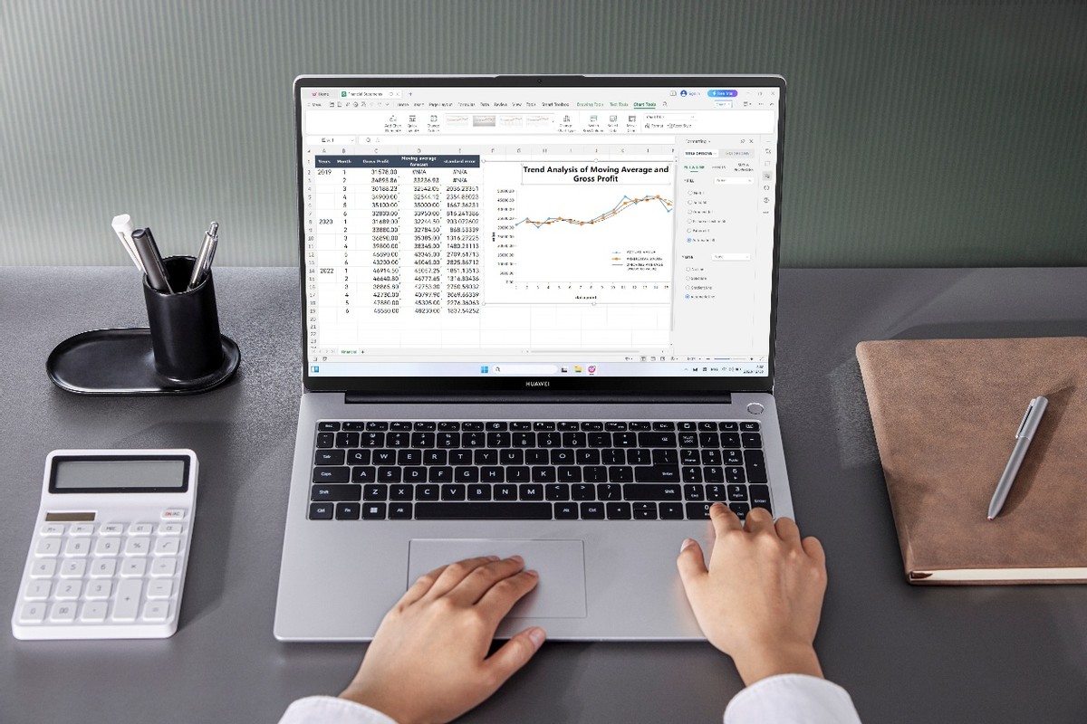 而且,华为MateBook 14的支持超级终端,可以与华为手机、平板电脑等设备跨设备协同。例如,大学生撰写论文时,多屏协同功能让用户能将手机屏幕“分身”至电脑桌面,一边在电脑上敲击键盘,一边直接拖拽手机中的文献截图和资料到Word文档中,免去了频繁切换设备的繁琐。“超级中转站”则能暂存文字、链接、图片等素材,职场人在制作PPT时随时拖出使用。智慧搜索功能打通了笔记本与手机的藩篱,输入一个关键词,即可同时搜索两台设备中的相关文档、图片和聊天记录,让信息查找不再是大海捞针。
