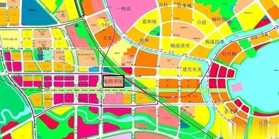 暮云方案的省图书馆位于万家丽路与芙蓉南路交汇处西南侧,属于长株潭融城核心区。