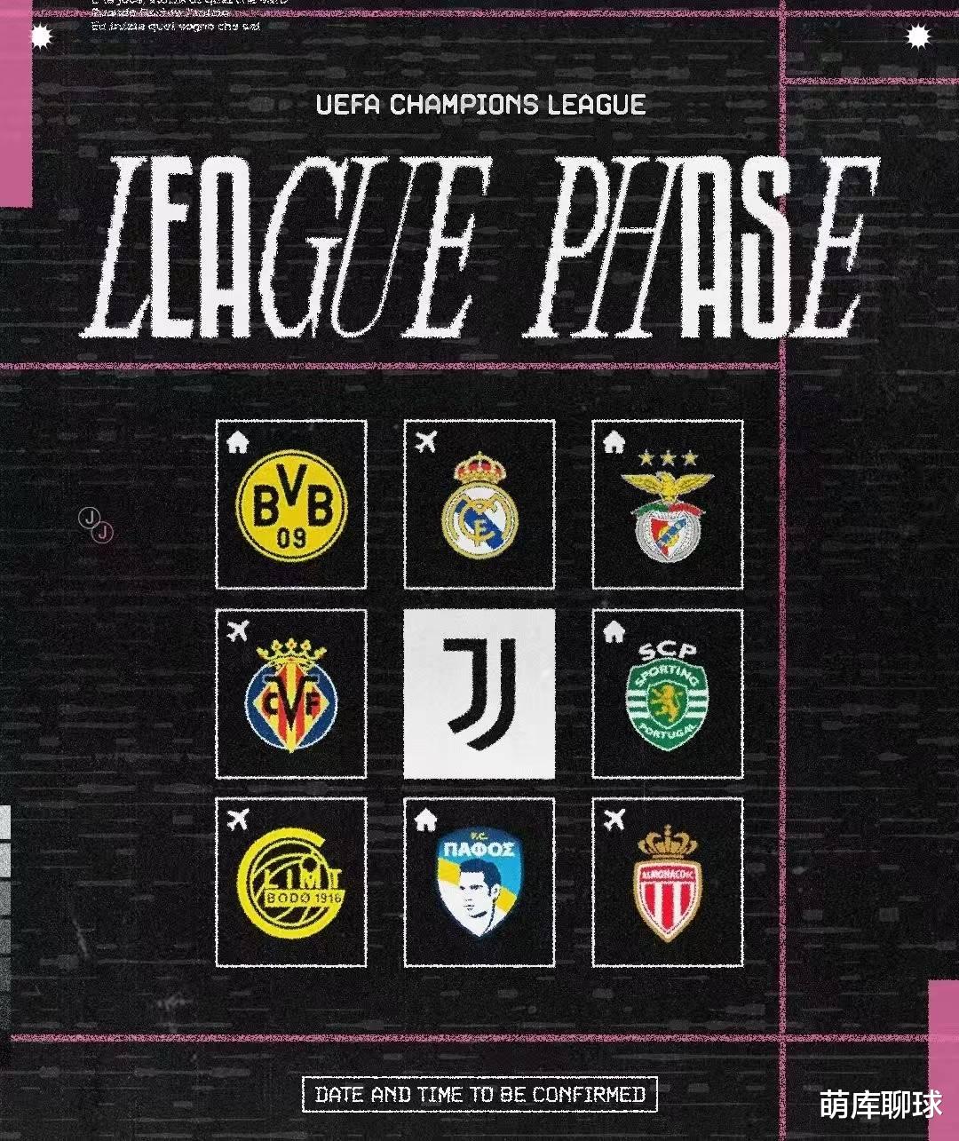 尤文的主场仅需要面对一支强队,他们还抽到了实力稍逊的一档队多特蒙德,另外三个主场对手是葡超豪门本菲卡和葡萄牙体育,还有欧冠新军帕福斯。客场方面尤文将于皇马在伯纳乌展开较量,还有另一支西班牙球队比利亚雷亚尔,另一支欧冠新军博德闪耀,将在主场面对尤文,同时还将客场面对法甲球队摩纳哥。