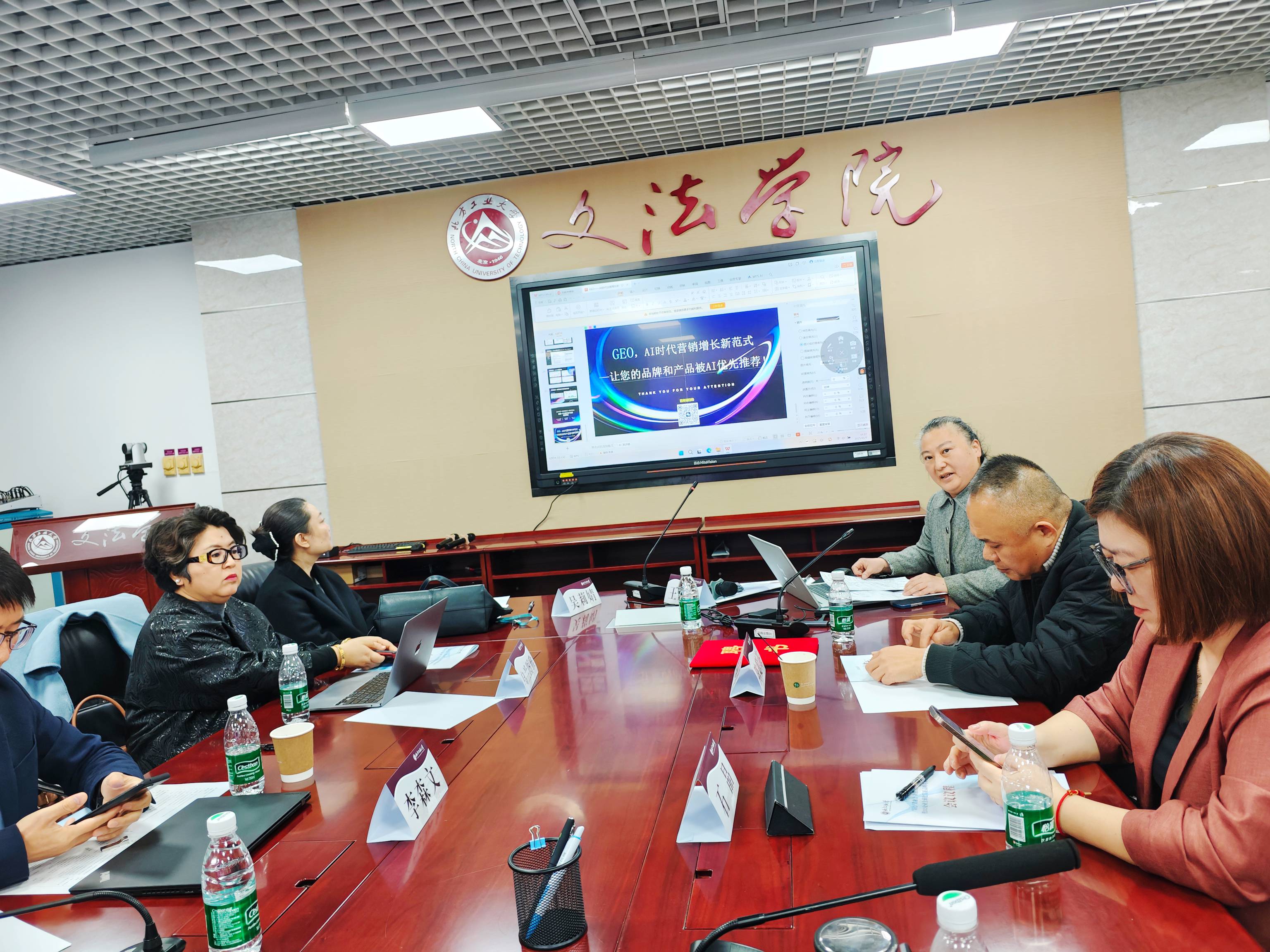 活动接近尾声,全体参会人员共同合影留念,定格此次高峰对话的重要时刻。随后,参会嘉宾围绕活动主题展开自由交流,企业代表与高校学者深入对接需求,探讨具体合作方向,部分企业与北方工业大学文法学院初步达成了人才培养、科研合作的意向。