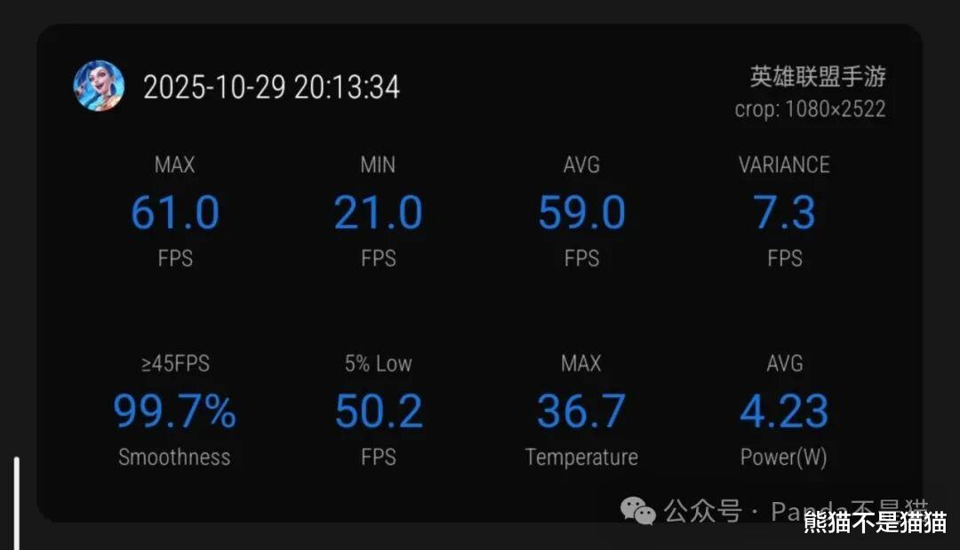 测了测英雄联盟手游,画质、特效都拉满的情况下,大乱斗模式里大部分时候能稳在 60 帧左右。不过偶尔会有点掉帧,尤其打开商店的时候会明显点。之所以一直是 60 帧,也因为这手机最高就支持 60 帧显示,想高也高不上去。