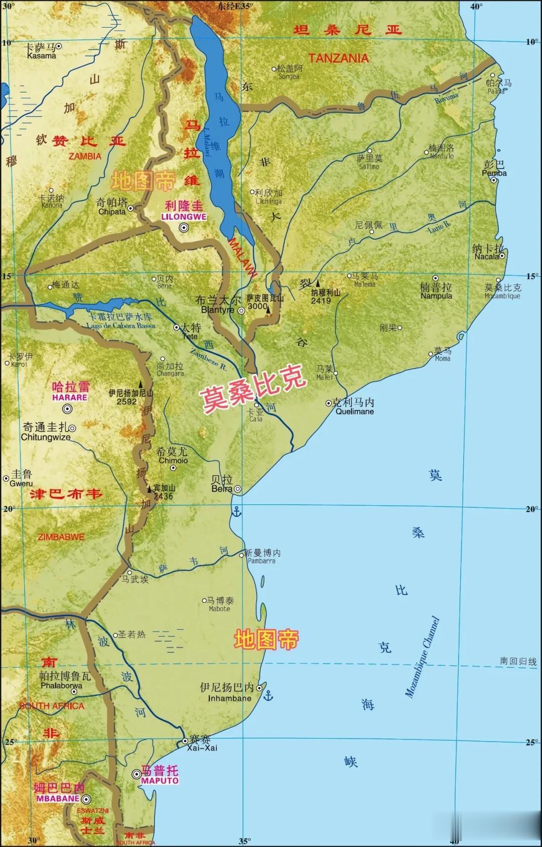 莫桑比克的几条主要河流,从北往南是鲁伍马河、卢里奥河、赞比西河、萨韦河、林波波河,都是自西向东注入印度洋。赞比西河在中间,未能与其他大河形成河网,各河流只能各自为战。假如岷江、嘉陵江、汉江、湘江、赣江等长江支流都和长江平行,全部向东注入东海,长江的水量和货物运输量恐怕都会下降一个数量级。