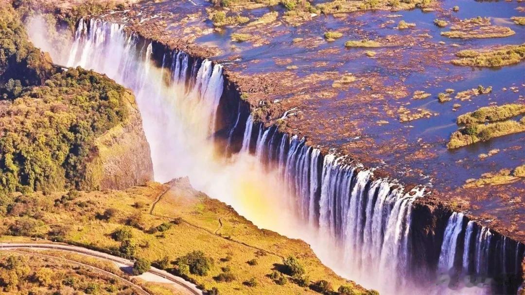 维多利亚瀑布,地处赞比西河上游与中游的结合部,北属赞比亚,南属津巴布韦,相似的还有北美洲尼亚加拉瀑布分属美国和加拿大,南美洲伊瓜苏瀑布分属巴西和阿根廷。