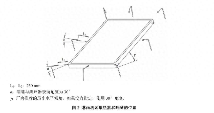 3.3 喷淋流量:每个喷嘴的质量流量为2kg/min±0.5kg/min,每平方米集热器总面积的喷淋量不小于0.03kg/s,确保喷淋强度符合自然降雨的实际情况,能够有效检测集热器的密封性。