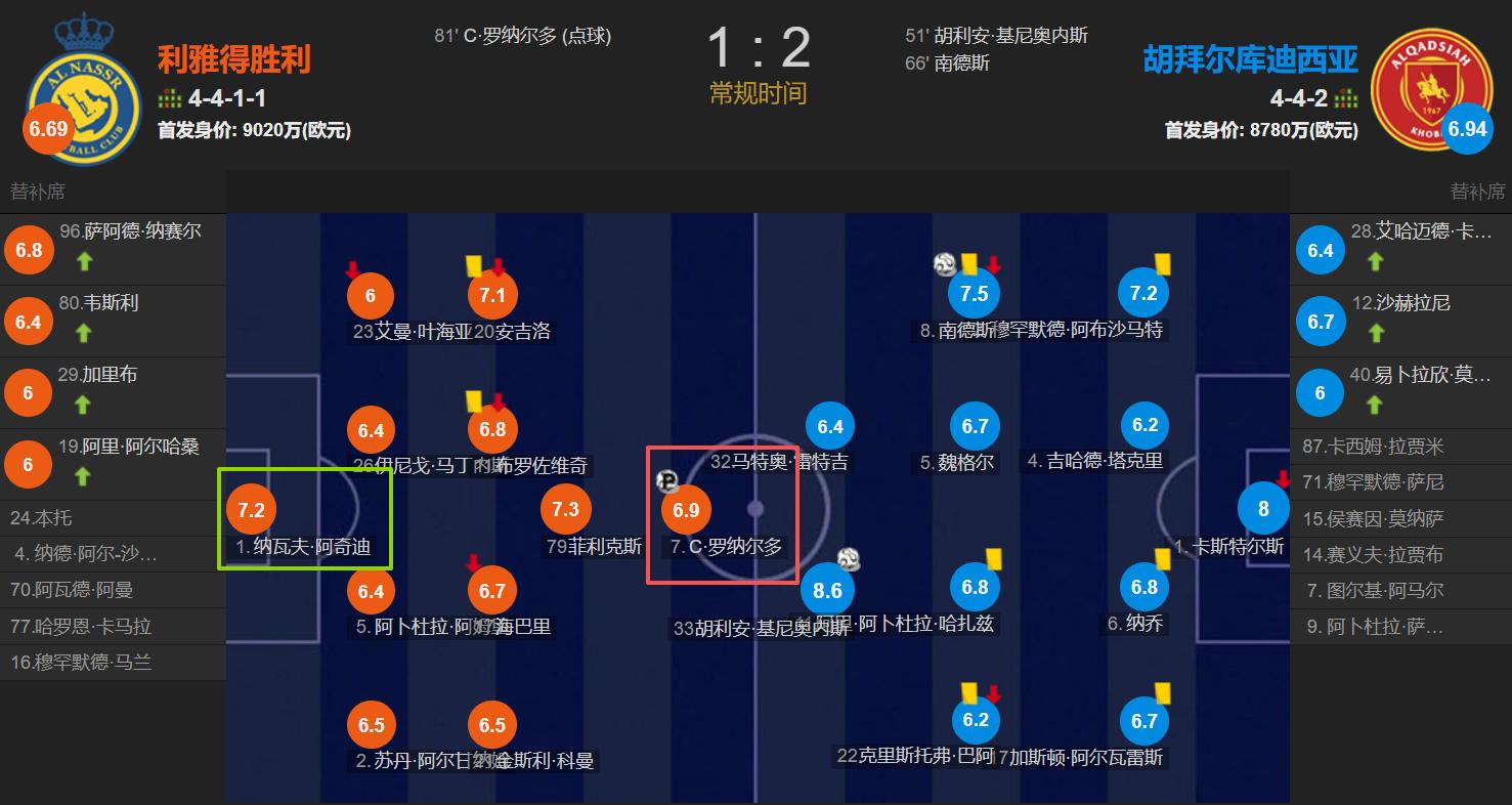 在最新的一轮沙特超的比赛中,利雅得胜利主场1-2输给了胡拜尔库迪西亚,这让利雅得胜利遭遇了联赛3轮不胜连续丢分的困境。此役,C罗首发出战踢满全场,获得了全场最多的5次射门,但除了点球都没有命中门框之内。赛后,C罗凭借着点球破门获得了6.9分的较低分,这评分比此役失误送大礼的利雅得胜利门将阿迪奇的7.2还要低。这意味着什么,C罗对球队的整体贡献基本全无,除了两队门将就数C罗跑动最少,基本上就是踢踢点球,门前抡一脚,偶尔顶个头球,遇上稍微强一点的对手,C罗基本上就隐身。利雅得胜利全队带着C罗在踢球,这样的简单死板的战术打法会让球队长期与冠军绝缘。