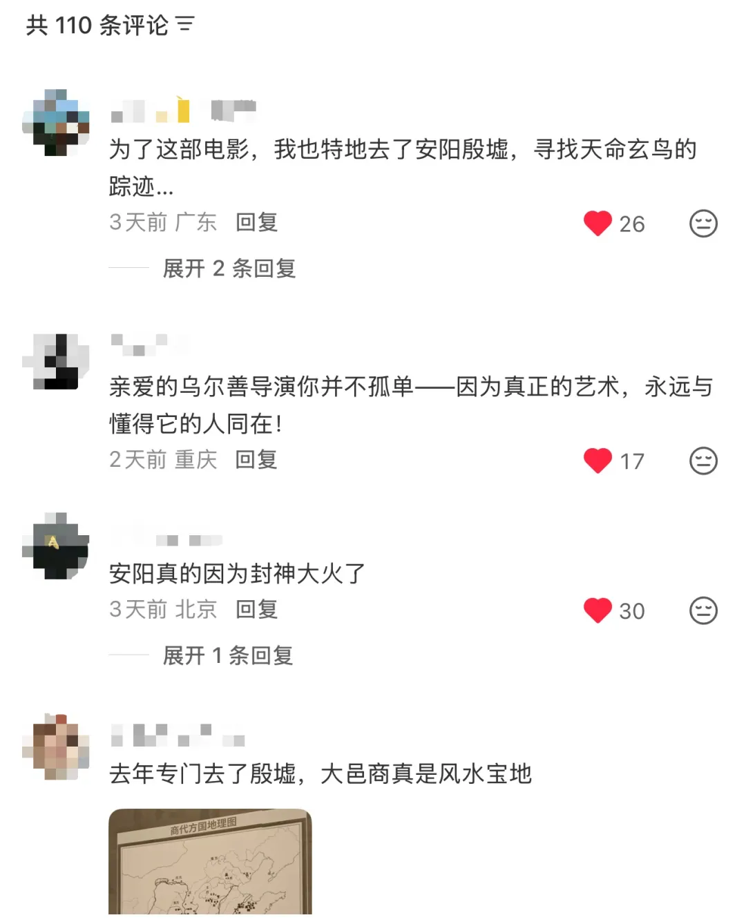 而不少观众看到乌尔善重温《封神》采风之旅,也纷纷在留言中表示:“为了这部电影(《封神》)我也特地去了安阳殷墟”“安阳真的因为封神大火了”“去年专门去了殷墟,大邑商真是风水宝地”因为一部电影而关注到一座城市,跟着电影去旅行,在带火城市旅游的同时,也让观众与游客感受到殷商文化、甲骨文、青铜器文化之美。