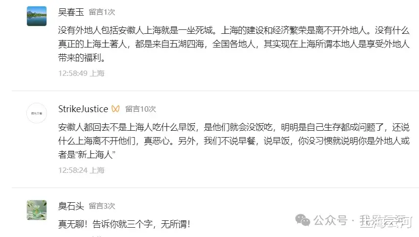 安徽老乡还说了:任何地方包括上海的上海人都没有我们安徽人多,上海是我们安徽人的上海。
