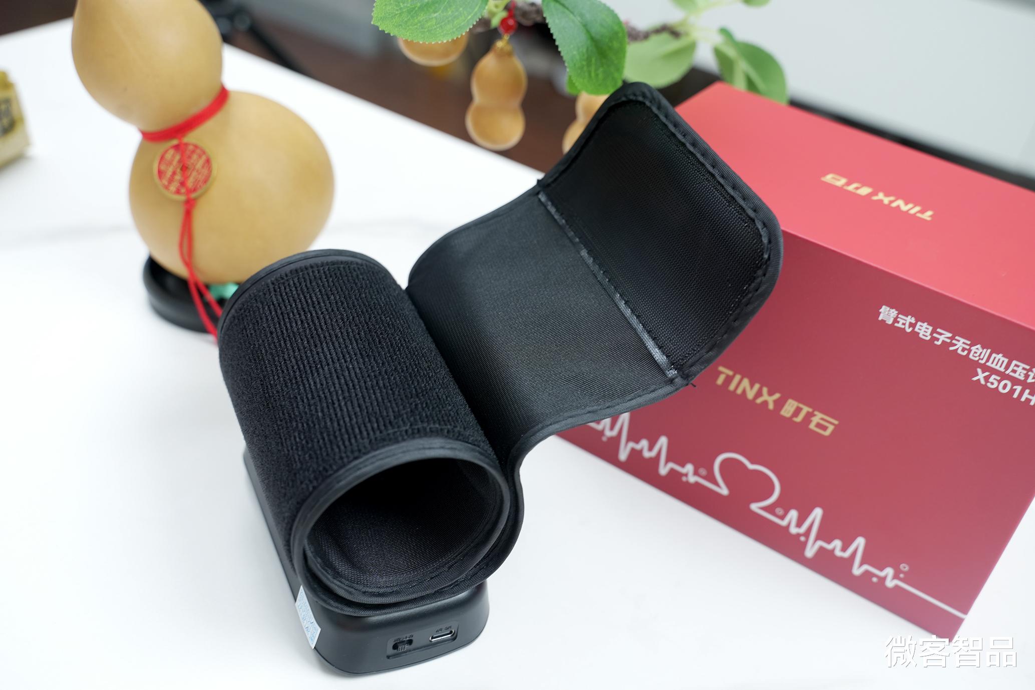 町石tinx臂式无距血压计操控简单便捷,针对老年人容易佩戴错误,导致数据偏差等问题,它升级了360°加长加宽袖带,不仅任意角度都可佩戴,而且直接套上自动磁吸收紧,单人单手即可操作。