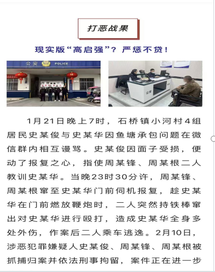 然而,这份对社会的热忱,并未换来应有的安宁。2022 年 8 月,史春华因鱼塘承包问题与同村村民史新俊在微信群内发生争执,未曾想这竟为他招来一场蓄意报复。但半年后的2023 年 1 月 22 日(大年三十)23 时 30 分,正当史春华在自家门前燃放鞭炮、喜迎新春之际,史新俊指使的周成根、周俊锋、汪文选三人,蒙面持锒牙棒、棒球棒等凶器突然窜出,对其头部、胸部、腰部、腿部等全身多处疯狂殴打。直至鞭炮燃放完毕,施暴者才在汪文选驾车、李全龙放风的配合下仓皇逃逸,史春华当场血流不止,全身多处受伤。