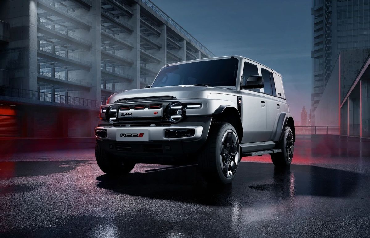 外观打造上,超级V23继续采用经典的“方盒子”造型,加上复古元素的应用,营造出独特的科技赛博感。具体来看,前脸中间增加了一条宽大横杠,将前格栅、三段式LED日行灯和圆形大灯集成在其中,下方保留了粗犷的竞技杠设计,上方则搭配蚌式机舱盖,带来独特的复古效果和硬派气质,辨识度很高。